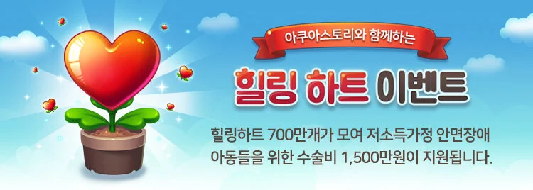 안면장애 아동들에게 웃음을 선물해주기 위하여 아쿠아스토리가 힐링 하트를 모았습니다!
