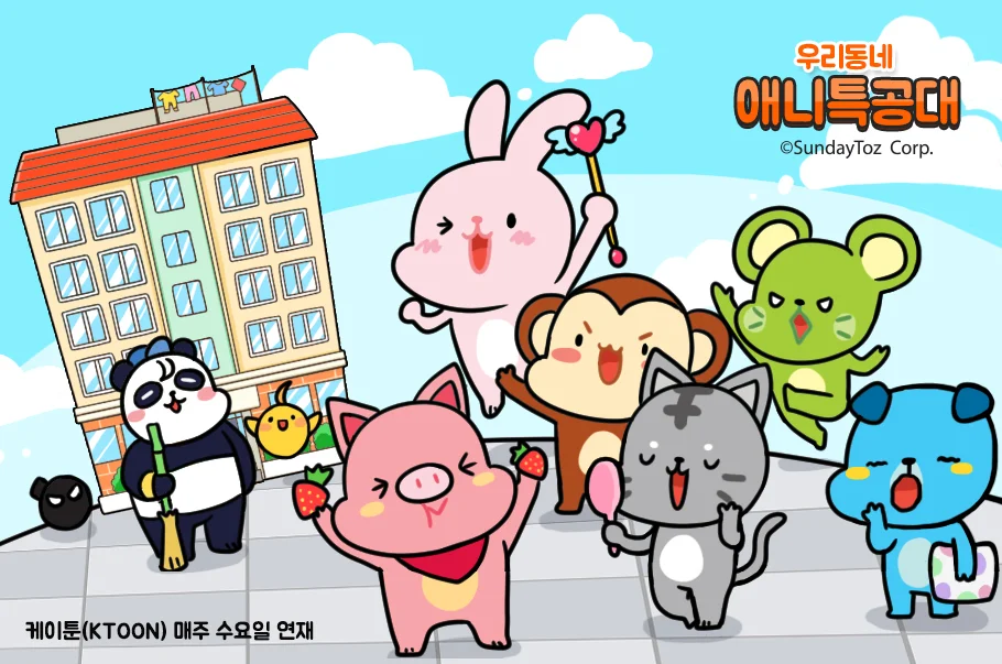 선데이토즈(대표 이정웅, www.sundaytoz.com)는 자사의 IP를 활용한 웹툰 ‘우리동네 애니특공대’를 엔터테인먼트 포털 사이트 케이툰을 통해 연재한다고 30일 밝혔다.