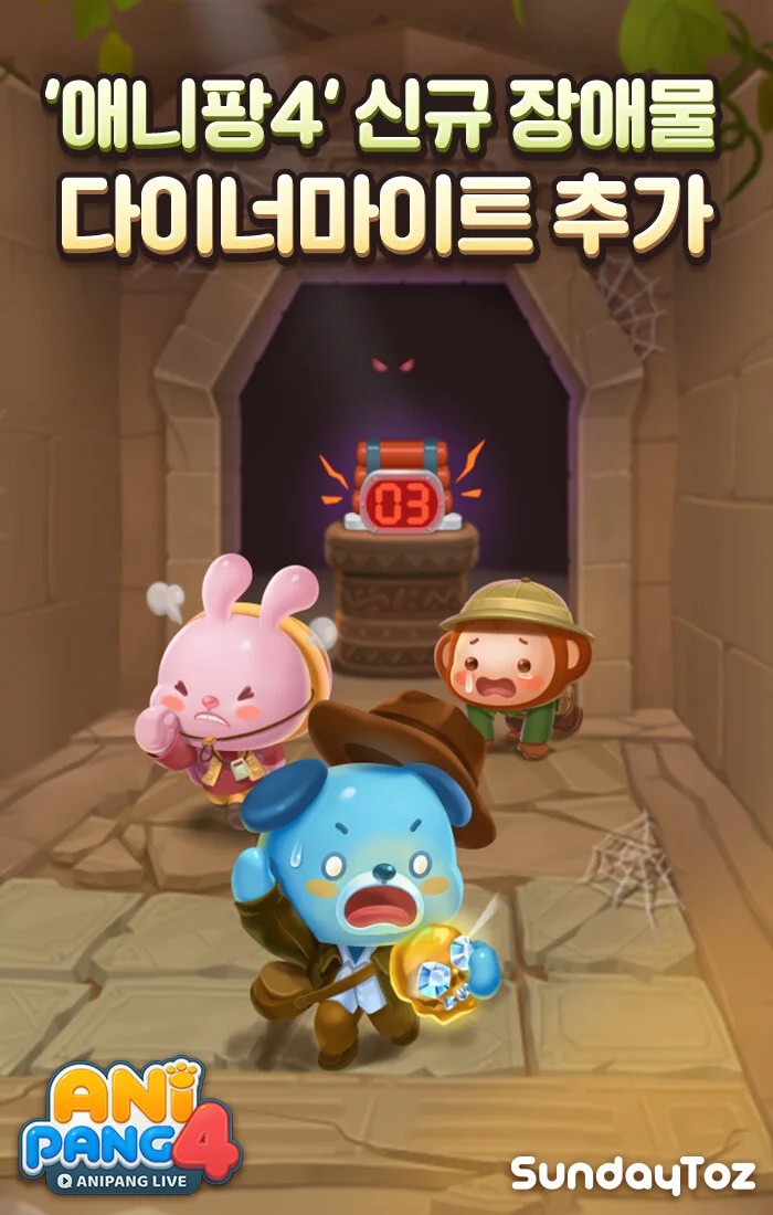 선데이토즈(대표 김정섭)는 자사 인기 모바일 퍼즐 게임 '애니팡4'에 신규 블록 '다이너마이트'를 선보인다고 2일 밝혔다.