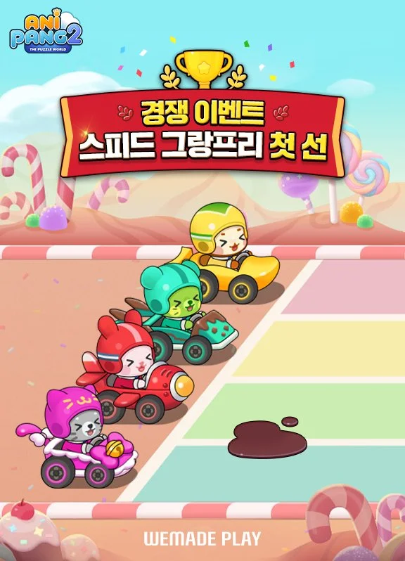 ㈜위메이드플레이(대표 이호대)는 모바일 게임 '애니팡2'에 새로운 경쟁 이벤트 '스피드 그랑프리'와 신규 블록을 추가하는 업데이트를 진행했다고 25일 밝혔다.
