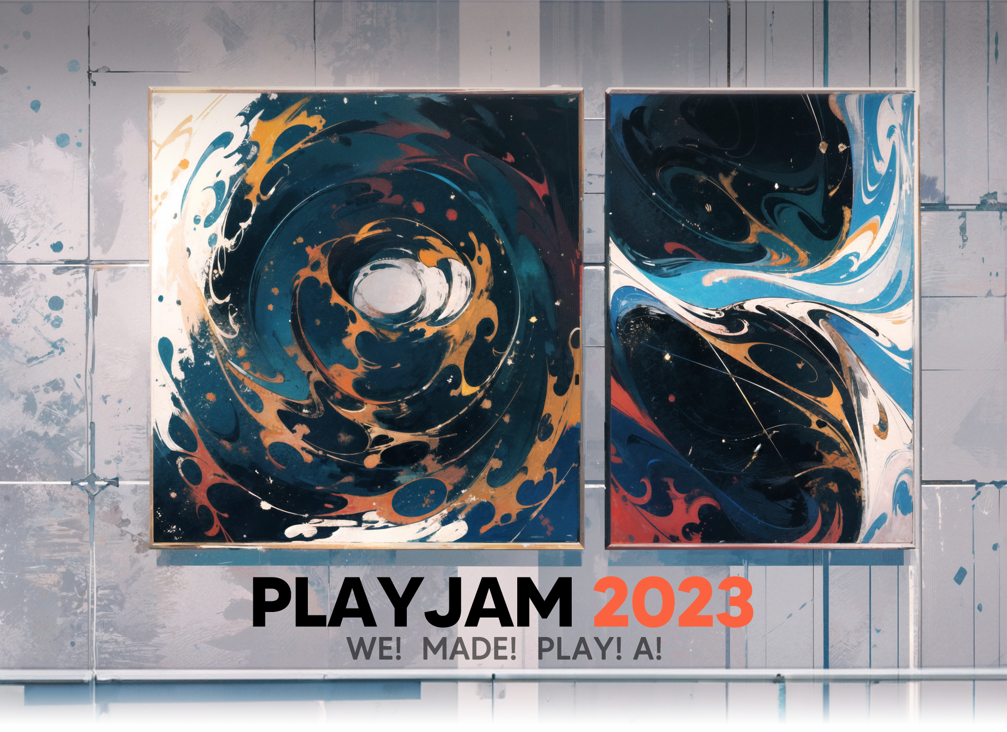 한편 AI를 화두로 진행하는 ‘플레이잼 2023’에서는 다양한, 혁명적, 걸작, 최고, 품질, 오일 페인팅, 감성적 등을 키워드로 AI가 제작한 행사의 대표 이미지가 포스터와 게시판을 통해 공개되었다. 회사 측은 자체 AI 프로그램 ‘애니’가 ‘AI’의 영문 철자를 기하학적으로 재구성해 급격한 변화와 파도처럼 일상에 밀려오는 인공지능을 심볼화했다고 설명했다.