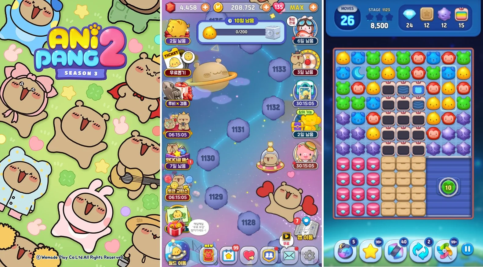 한편 퍼즐판과 블록 디자인을 변경하는 세번째 시즌을 선보이며 퍼즐 팬들의 호응을 얻고 있는 ‘애니팡2’는 새로운 57번째 에피소드의 퍼즐 스테이지와 특수 블록을 선보였다. 신규 블록 ‘보석 상자’는 퍼즐 이동에 맞춰 여닫히는 기능으로 보석 획득의 재미와 긴장감 넘치는 두뇌 플레이를 제공할 퍼즐 소재로 첫 선을 보인다. 아울러 메뉴 실행 시간을 줄인 데이터 처리 기술 업그레이드와 이용 환경을 간소화한 디자인 역시 퍼즐의 몰입감을 더할 게임 외적 요소로 준비됐다는 게 회사 측의 설명이다.